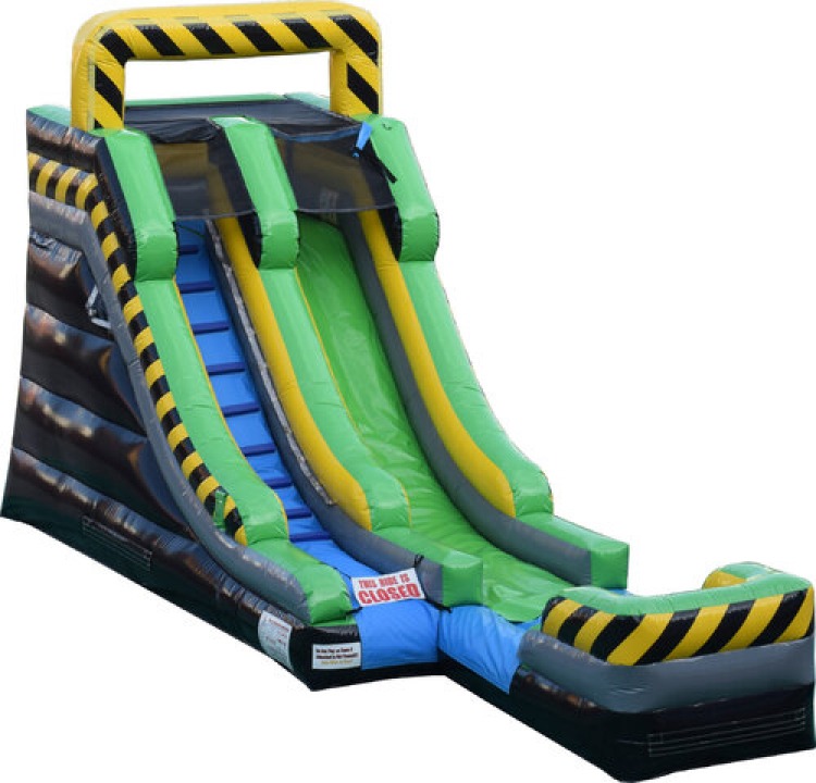 16 Foot slide for all ages. Proceed with caution and have fun! Price includes delivery, setup, and pick up. 100 foot extension cord included. Customer must have power supply. Generators are available at extra cost.
