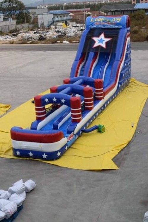 Experience the freedom on our 27 foot, double lane, Liberty slide. Price includes delivery, setup, and pick up. 100 foot extension cord included. Customer must have power supply. Generators are available at extra cost.
